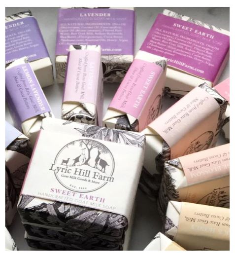 Lyric Hill Farm – Handcrafted Goat Milk Soaps and Needle Felted Goods. You can learn more about the farm on Facebook @LyricHillFarms.