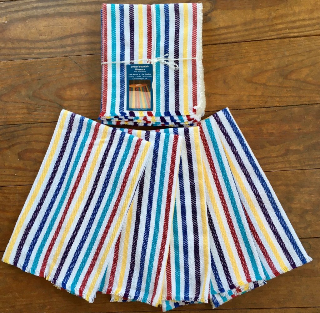 Under Mountain Weavers – Handwoven cotton & bamboo napkins, towels & wraps; chenille scarves & shawls; woolen blankets & shawls from local sheep farms.